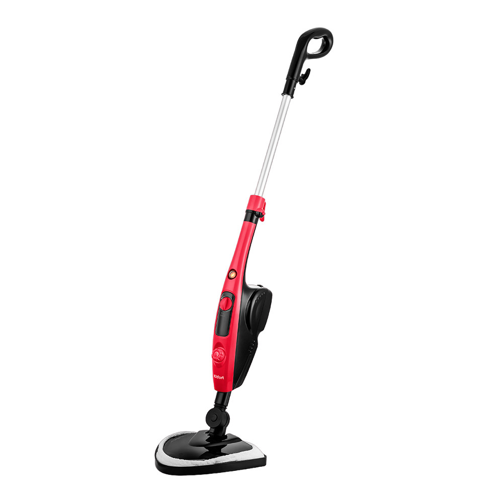 Паровая швабра КТ-1017 поможет избавиться от пыли и грязи с помощью мощной струи пара, а также продезинфицирует обрабатываемую поверхность. Устройство оснащено резервуаром для воды емкостью 550 мл, что позволяет производить непрерывную уборку до 55 мин. Принцип действия паровой швабры основан на воздействии горячего пара на загрязнения. Пар проникает внутрь загрязнения, размягчая и растворяя его, а затем с помощью тряпки частички грязи смываются. Высокая температура пара способствует процессу очистки. Конструкция «2 в 1» предусматривает наличие ручного модуля, который удобно использовать с насадками. С помощью насадок можно почистить шторы и мягкую мебель. Струйная и угловая насадка помогут очистить щели, углы и другие труднодоступные места. Для очистки окон, зеркал и кафельной плитки предусмотрена специальная насадка для отпаривания со скребком. Ее можно использовать с тряпкой для отпаривания, чтобы отпаривать одежду и чистить обивку мягкой мебели. Плавная регулировка уровня подачи пара позволяет настраивать интенсивность работы устройства. Это очень удобно при очистке разных типов поверхностей с разным уровнем загрязнения. Чем сильнее загрязнение, тем больше пара потребуется. Для паровой швабры не нужны чистящие средства, поэтому она станет идеальным решением для уборки дома для аллергиков. В комплекте предусмотрена рамка для ковра, которая обеспечивает легкое скольжение щетки для пола по ковру. Паровая швабра может стоять вертикально без дополнительной поддержки. С помощью держателя на рукоятке, шнур не будет мешаться. Множество насадок, которые идут в комплекте с паровой шваброй, справятся с труднодоступными местами и сложными поверхностями.