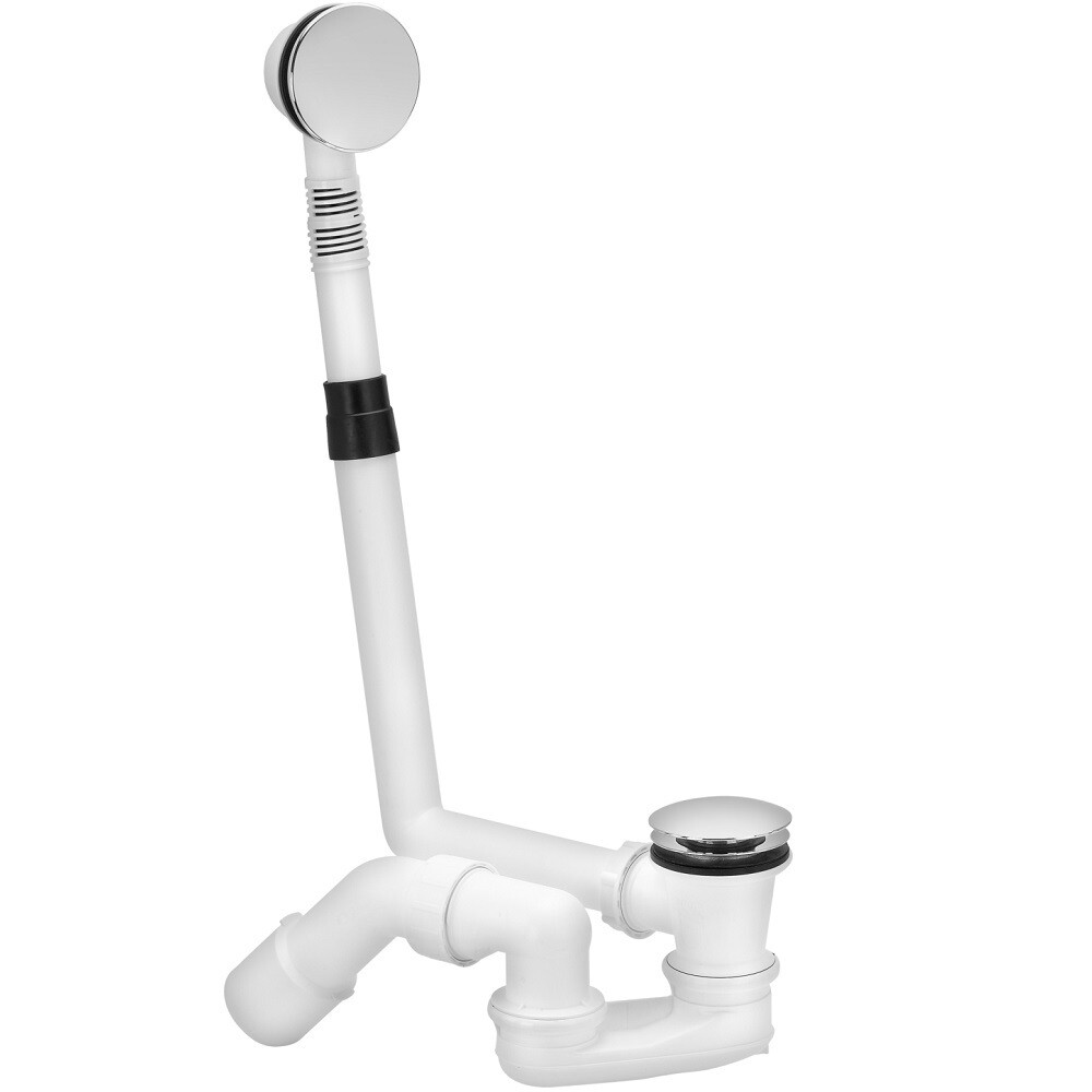 Слив-перелив подходит для стандартной ванны. Закрывается при нажатии на кнопку.