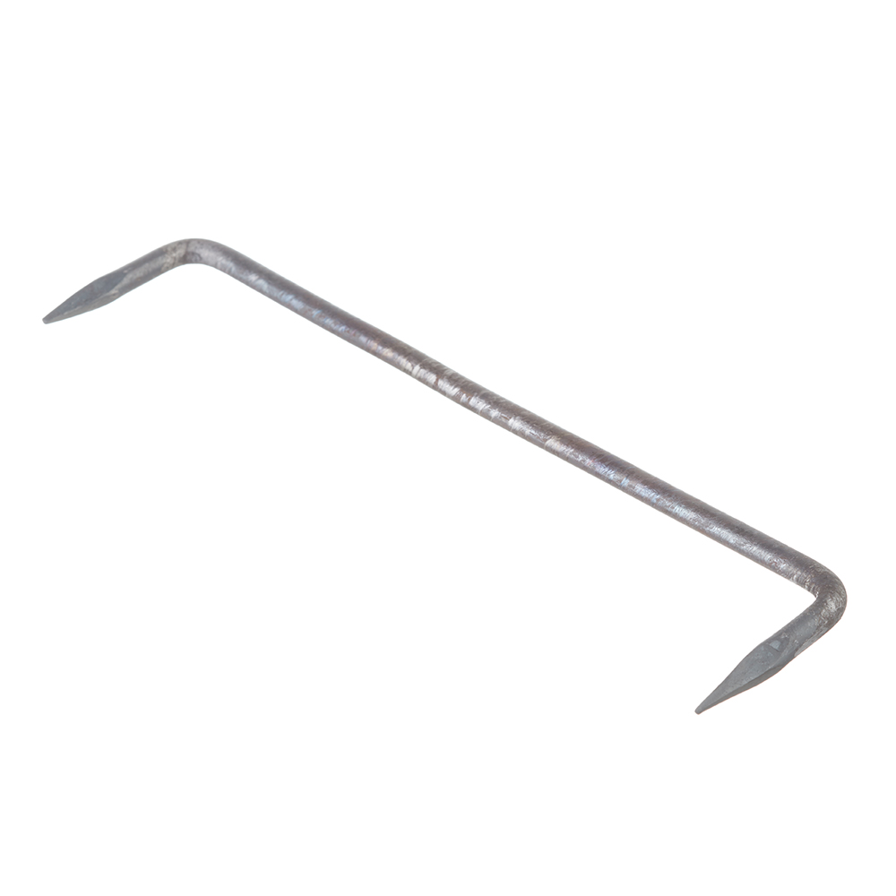 Скоба представляет собой металлическое изделие, по форме напоминающее букву «П». Скоба состоит из «ножек» и «спинки». Концы «ножек» выполнены в виде острых четырехугольных конусов. Скобы изготавливают из гладкого круглого стального прутка методом горячей ковки.