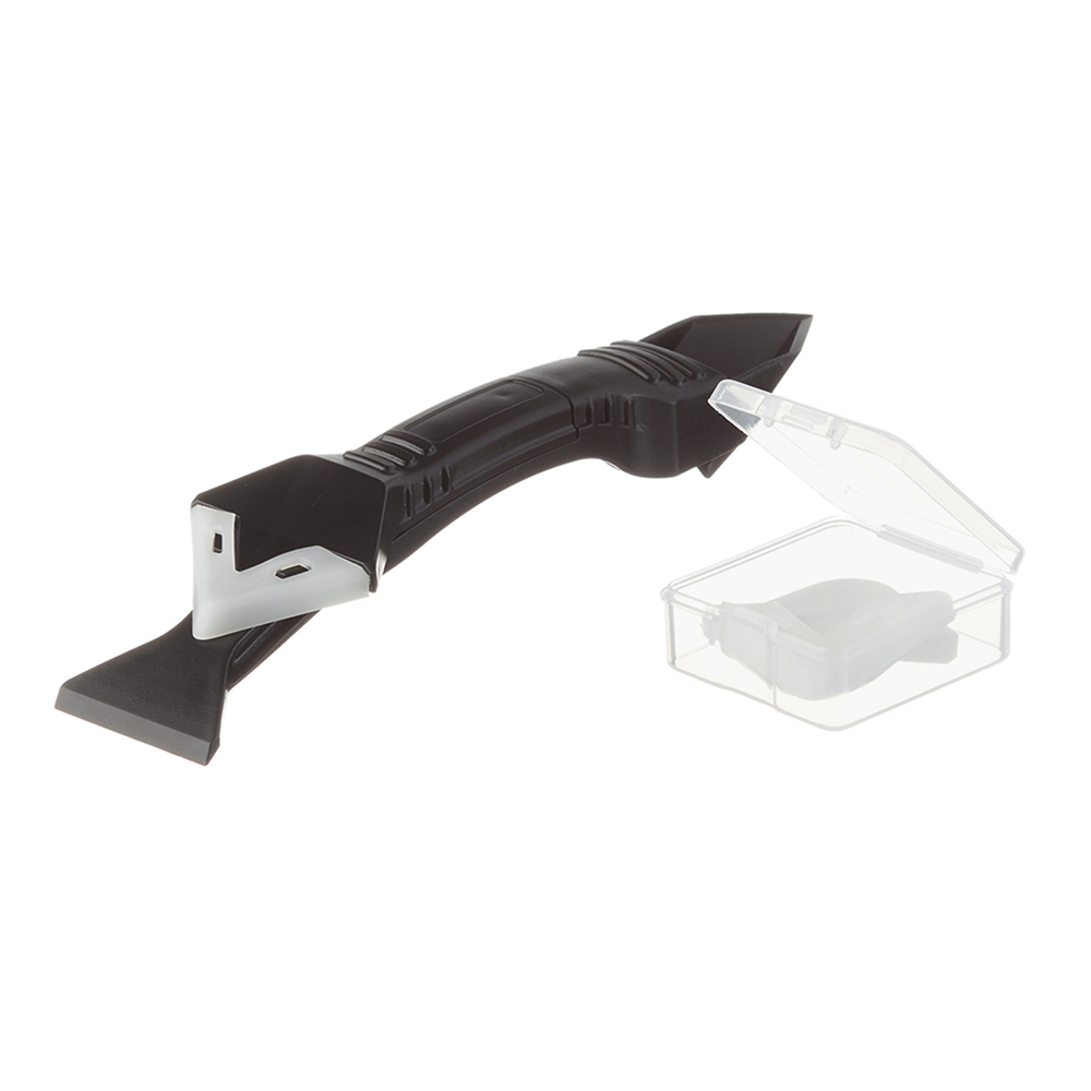 Предназначен для формирования гладких аккуратных швов разных конфигураций, а также для удаления излишков герметика со швов и поверхностей. Многофункциональный инструмент, на одном конце которого расположен выдвижной шпатель и широкая пластиковая лопатка, на втором конце — скребок.