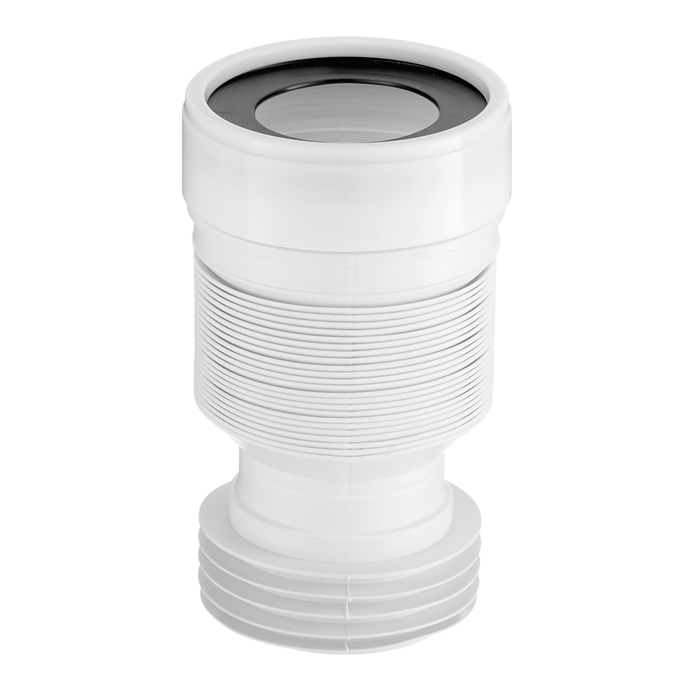 Для чугунных труб канализации. Длина трубы 225-520 мм, присоединение к унитазу через резиновую муфту, выход на канализацию 100-110 мм. Удлинители гибкие выполняют функцию фановых труб и предназначены для соединения унитаза с канализационной трубой. Основное преимущество в том, что они легко монтируются и нет необходимости заранее замерять угол и расстояние (как в случае с фановыми трубами).