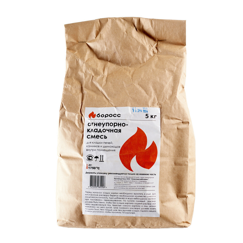 Смесь кладочная огнеупорная БоРосс серая 5 кг