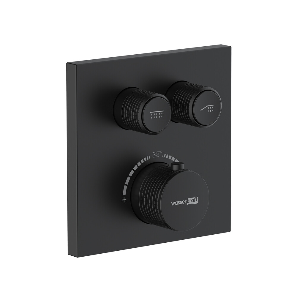 Смеситель для душа встраиваемый WasserKraft Elbe термостатический с переключателем без лейки черный (7448 Thermo)