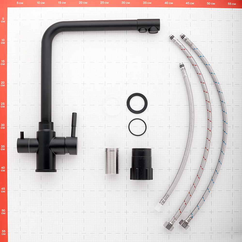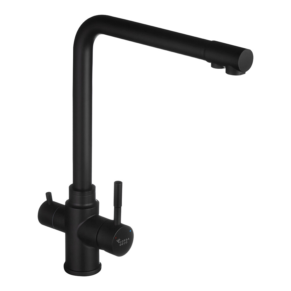 Смеситель для кухни Corsa Deco Prime черный с высоким изливом с подключением к фильтру однорычажный (966385)