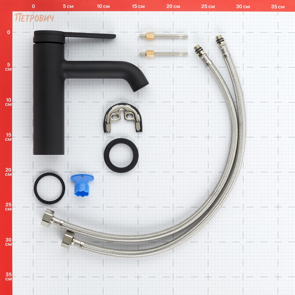Смеситель, монтажный набор, гибкая подводка, инструкция по эксплуатации с гарантийным талоном.