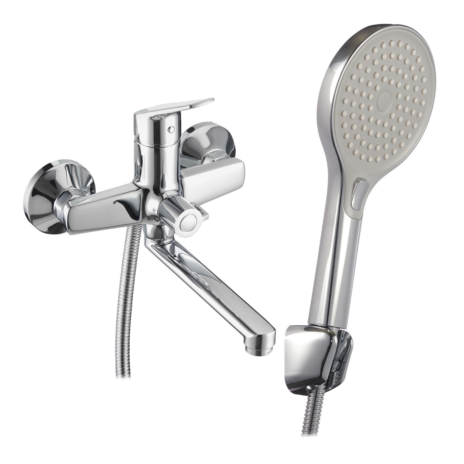 Комплектация: Смеситель, монтажный набор, душевой шланг, ручная лейка, держатель, инструкция по эксплуатации с гарантийным талоном.