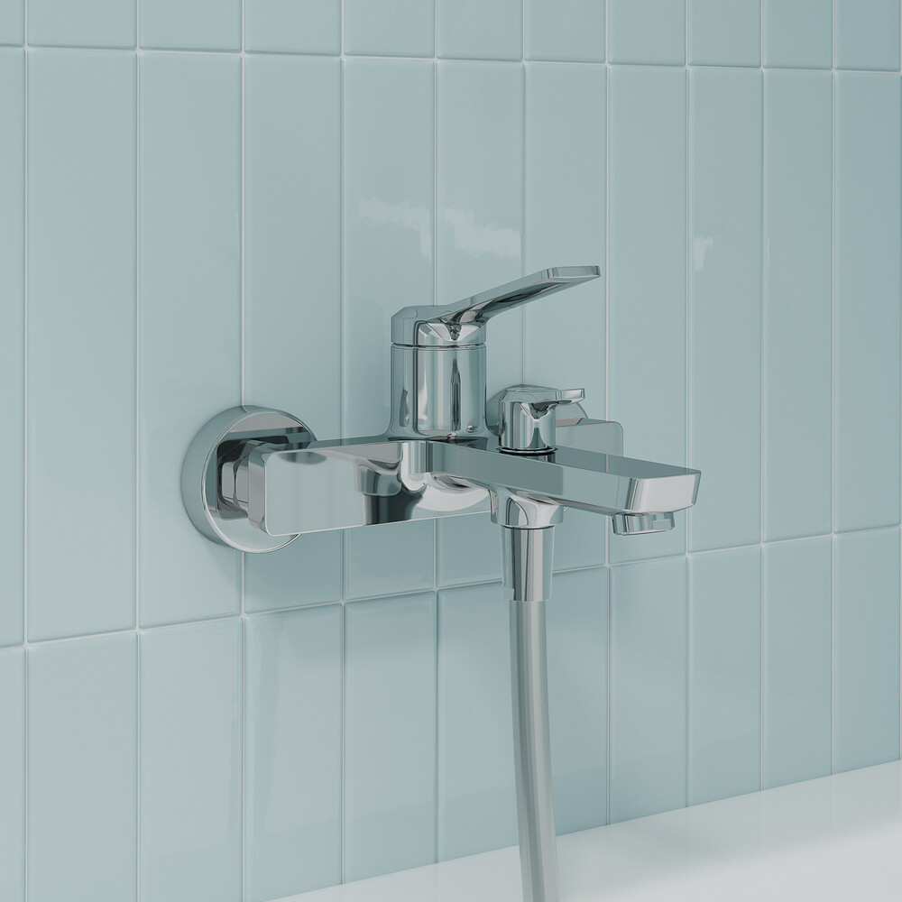 Смеситель для ванны выполнен из латуни в цвете хром. Керамический дивертор надежно переключает поток воды между лейкой и изливом даже при минимальном давлении воды.