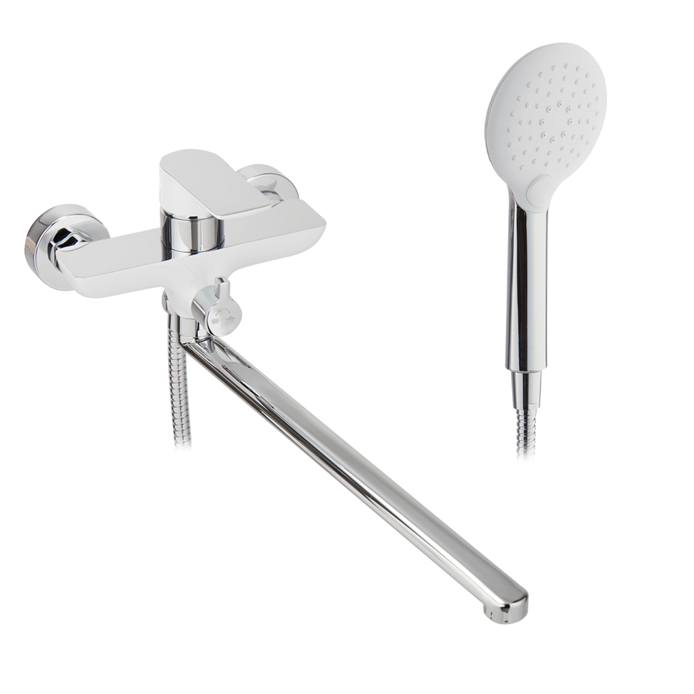 Смеситель для ванны Lavelly White Modern хром/белый однорычажный с длинным изливом с лейкой (623748)