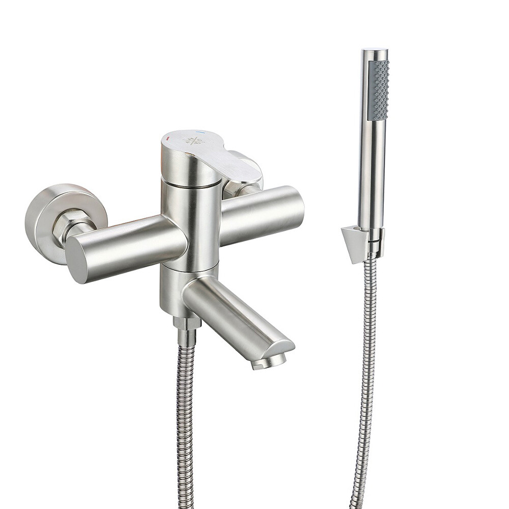 Смеситель для ванны РМС SUS124 нержавеющая сталь однорычажный с коротким изливом с лейкой (SUS124-009E)
