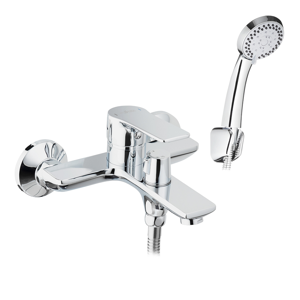 Комплектация: смеситель, пластиковый аэратор с функцией легкой очистки, керамический картридж 35 мм, переключатель с керамическими пластинами (угол поворота — 90⁰), аксессуары в комплекте (шланг 1,5 м, настенное крепление, 5-функциональная лейка Ø85 мм с функцией легкой очистки), присоединительная группа (эксцентрики с отражателями) для вертикального крепления.