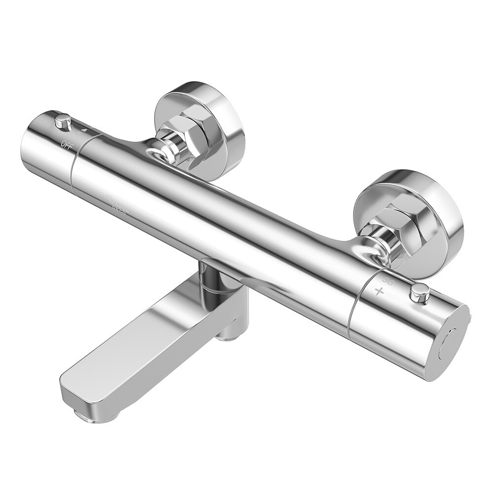 Термостатический смеситель автоматически поддерживает установленную температуру воды. Основным элементом смесителя является термостатическая головка. Она отличается быстрой реакцией на изменения температуры и перепады давления в системе водоснабжения, что позволяет поддерживать температуру на заданном уровне и исключает риск получения травмы. Установка температуры производится поворотом регулятора справа.