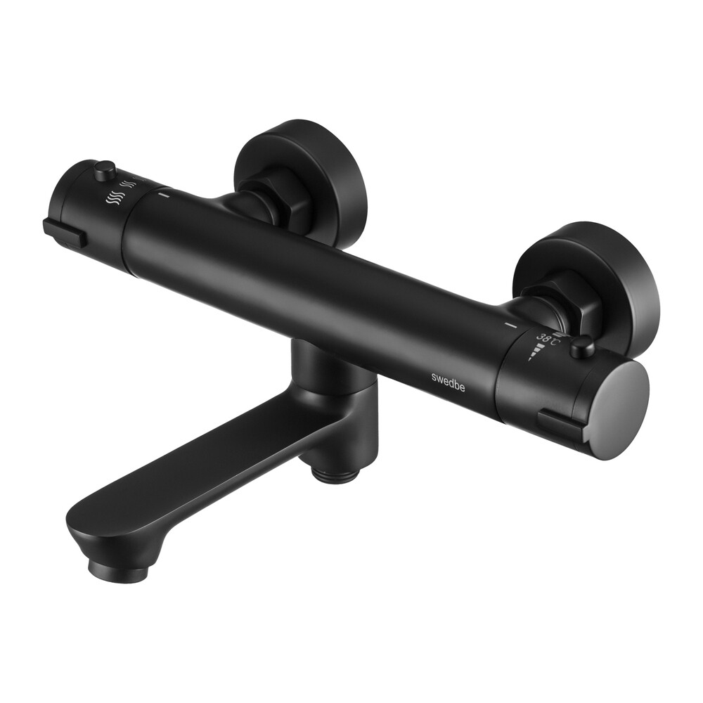 Смеситель для ванны термостатический Swedbe Mercury черный матовый с коротким изливом без лейки