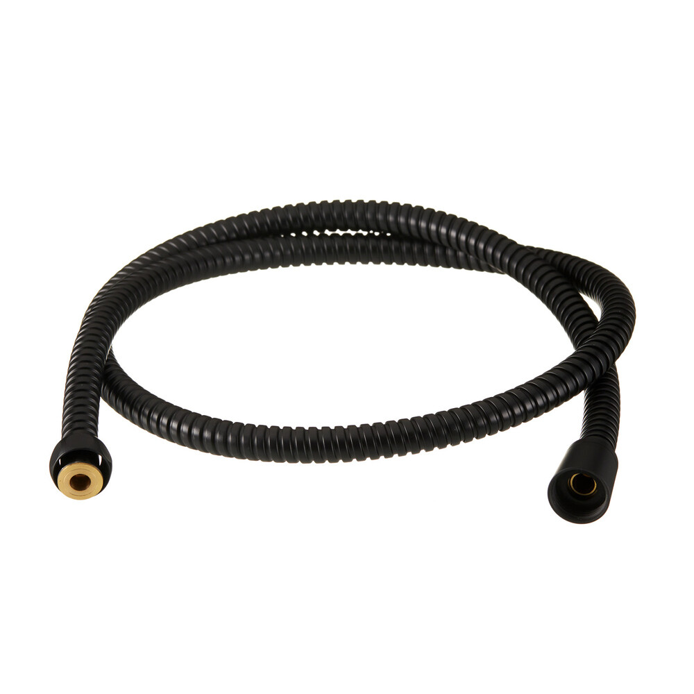 • Душевой шланг 1,2 м с защитой от перекручивания, оплеткой из нержавеющей стали, латунной гайкой и резиновыми уплотнителями.