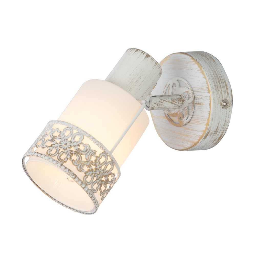 Спот с поворотным плафоном 20025/1 белый с золотом создаст качественное дополнительное освещение и станет эффектным дополнением к основному источнику света. Благодаря декоративному стеклянному плафону бра создает мягкое равномерное свечение. В качестве источника света используются сменные лампы типа «Свеча» или «Шар» с цоколем E14.