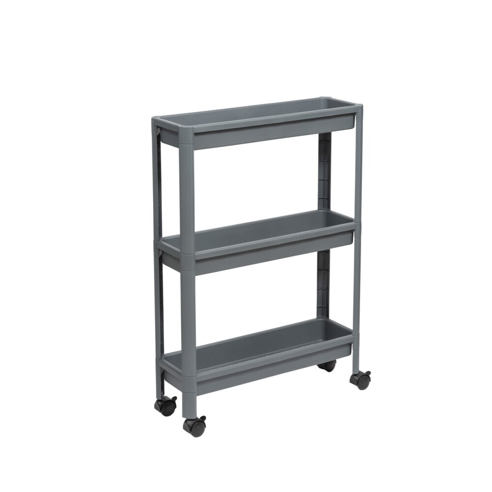 Стеллаж 3-х ярусный, узкий на колесах серии VIKEA — это оптимальное решение для организации пространства на кухне, в ванной, гостиной, прихожей или балконе, а также в любом другом помещении. Изделие состоит из 3-х полок. Узкий стеллаж оснащен четырьмя небольшими колесами с фиксаторами для свободного перемещения, благодаря которым этажерка становится мобильной и многофункциональной. Она компактная, но в тоже время вместительная, впишется в пространство любой комнаты. Этажерка имеет оптимальное расстояние между полками, это позволяет разместить все самые необходимые полезные в хозяйстве мелочи. Стойки сконструированы таким образом, что при их монтаже создается надежное соединение с полкой — это обеспечивает монолитность конструкции и дает возможность легко поднять и переместить этажерку за верхнюю полку. Каркас этажерки выполнен из прочного пластика и не прихотлив в уходе, достаточно протереть влажной губкой или промыть под струей теплой воды. На дне каждой полки имеются отверстия, благодаря которым влага не будет накапливаться. Изделие безопасно, не имеет острых углов и изготовлено из экологичного материала, предназначенного для контакта с пищевыми продуктами и детскими вещами. Изделие поставляется в разобранном виде в индивидуальной коробке, надежно предохраняющей от повреждений, внутри подробная схема сборки.