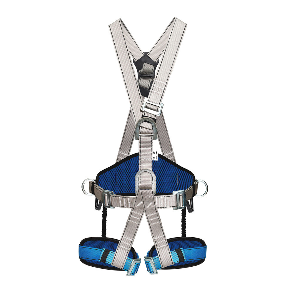 Привязь оснащена двумя D-кольцами, расположенными на поясе – для удержания и позиционирования, грудной точкой – для удержания и страховки, и брюшной точкой крепления – для работы в системах канатного доступа.