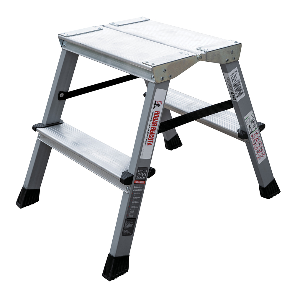 Стремянка алюминиевая 2 ступени 80 мм двухсторонняя 0,44 м Новая высота 200
