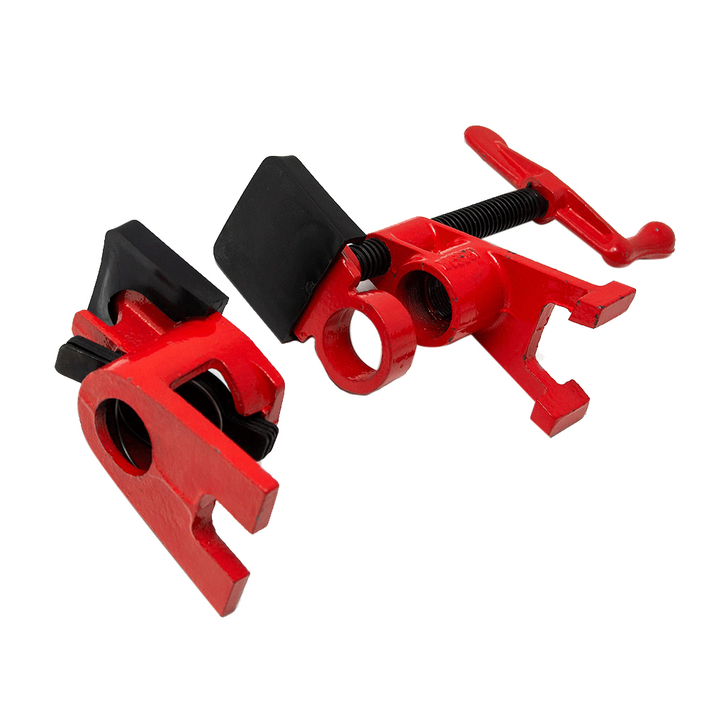 Предназначена для кратковременной фиксации деталей с целью их склеивания, а также отпиливания, сверления и другой обработки. Принцип работы такой же, как и у F-образной струбцины. Разница в том, что у трубной нет стержня. Это сделано для увеличения спектра применения инструмента.