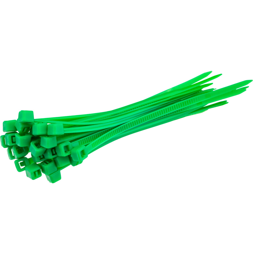 Хомут кабельный, нейлоновый, размером 100×2,5 мм, представлен в упаковке из 25 штук в зеленом цвете. Хомут кабельный изготовлен из прочного и гибкого нейлонового материала, который обеспечивает надежную фиксацию и долговечность при использовании. Он применяется для упорядочивания кабелей и проводов, чтобы избежать их спутывания и обеспечить чистоту и безопасность в различных средах, включая дом, офис или автомобиль. Фиксирующий механизм замка позволяет регулировать и закреплять кабели с требуемым уровнем натяжения. Они просты в использовании и могут быстро и надежно закрепить несколько кабелей или проводов вместе.