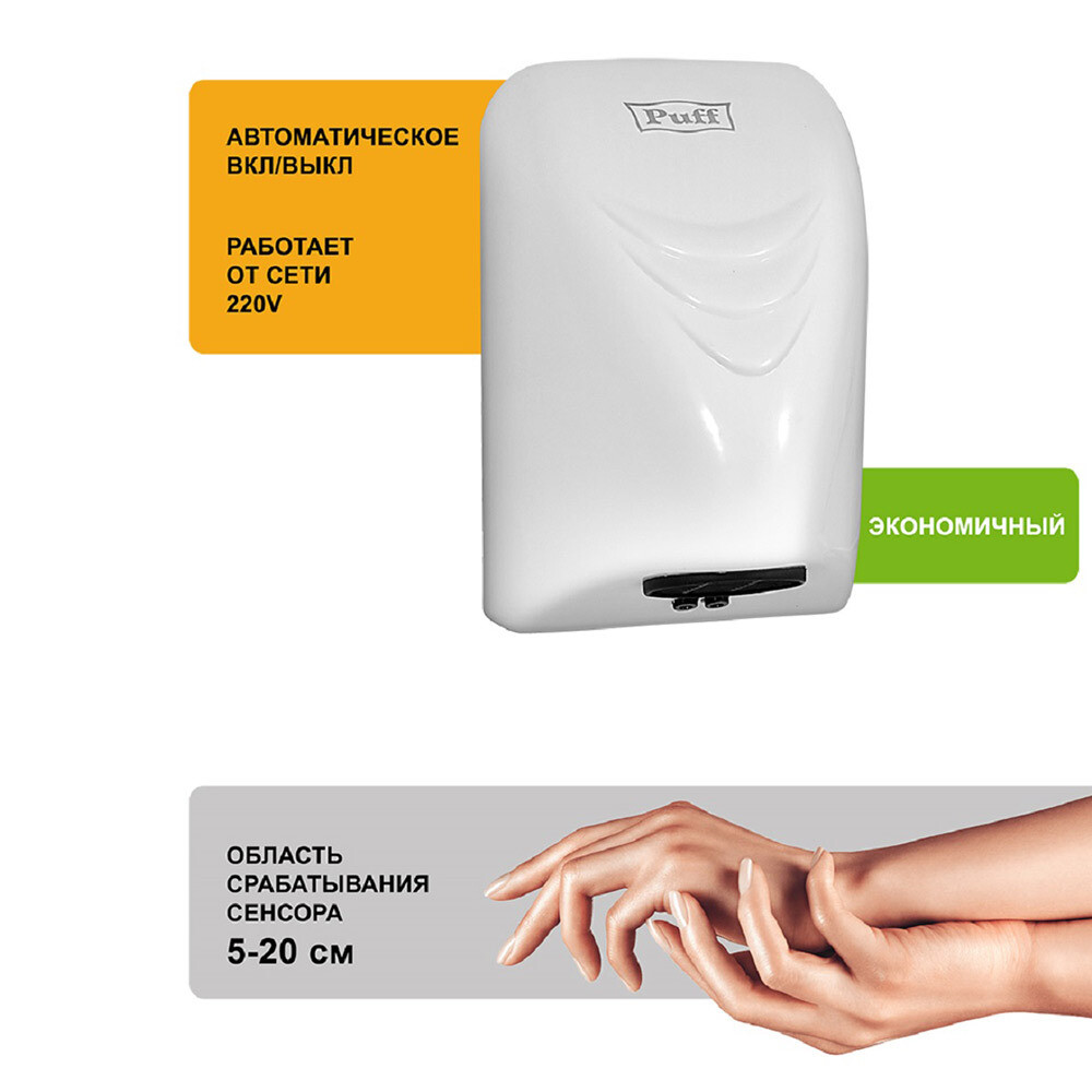 Сушилка для рук Puff 800 Вт белая (8814)