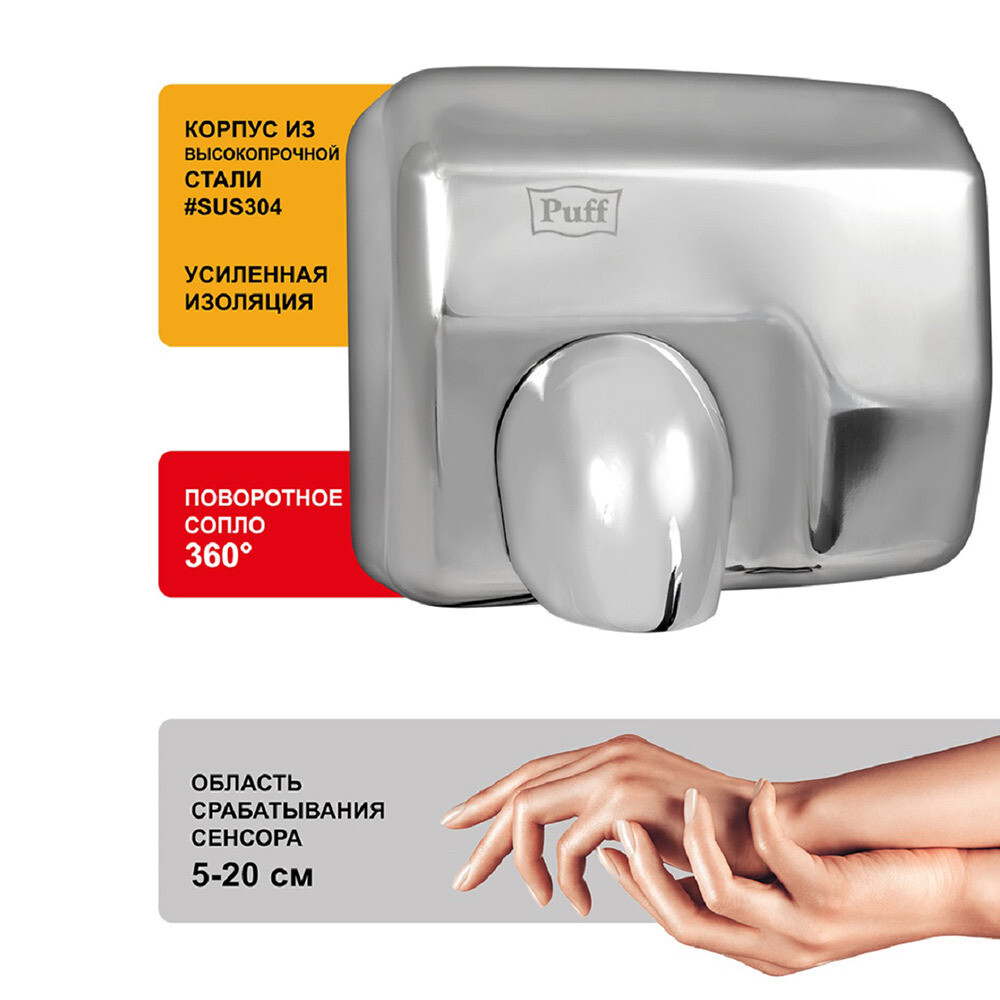 Сушилка для рук Puff антивандальная 2300 Вт хром (8843)