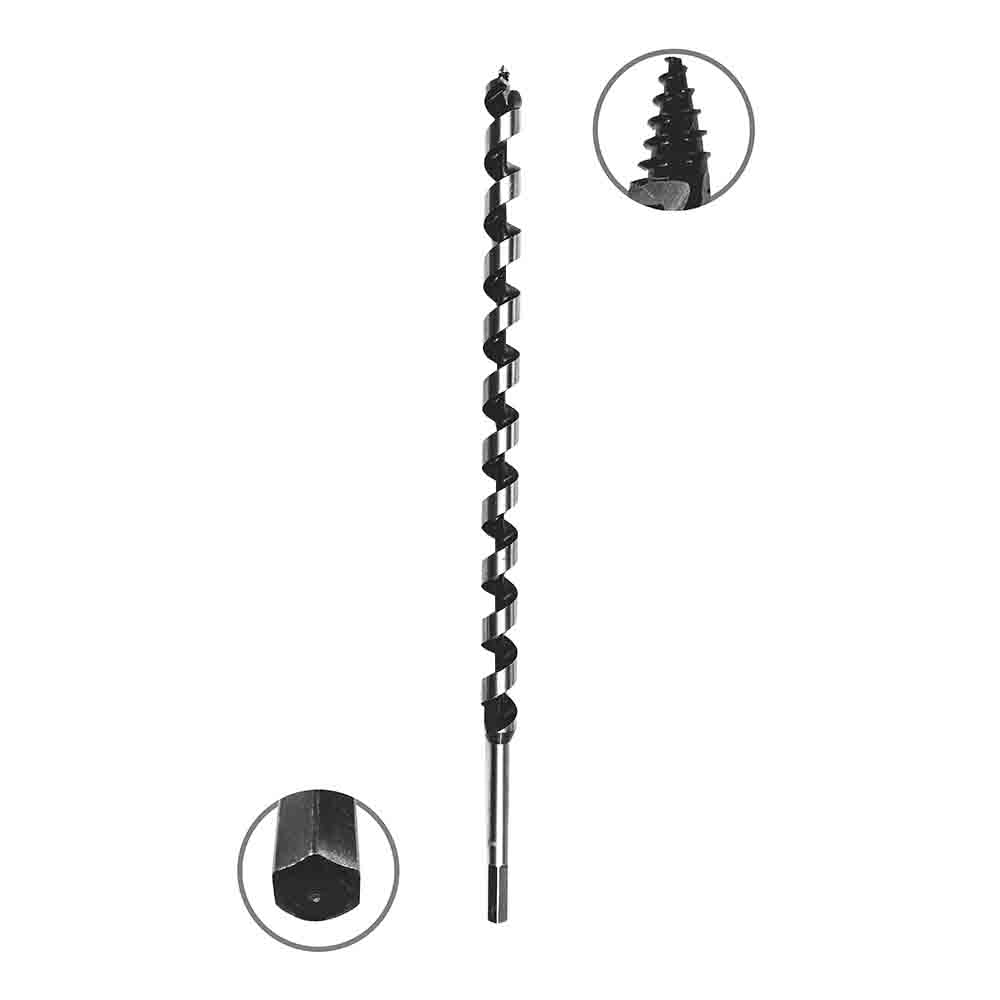 Предназначено для глубокого сверления в заготовках ДСП, мягких и твердых породах древесины. Материал сверла — инструментальная сталь повышенной прочности, которая подходит для изготовления сверл, сохраняя их режущие качества и высокий рабочий ресурс. С помощью шестигранного хвостовика 12,5 HEX сверло надежно закрепляется в патроне дрели. Специальная форма шнека и центрирующего острия обеспечивают быстрый заход в материал и выход без заклинивания.