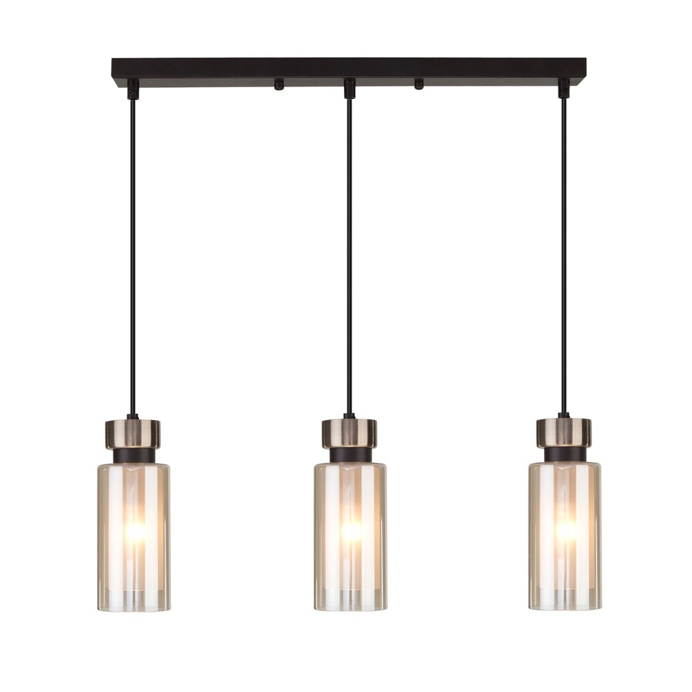 Трехрожковый подвесной светильник со стеклянным плафоном 50115/3 в черном цвете с янтарными плафонами предназначен для создания дополнительного освещения и акцентной подсветки в современных интерьерах. Светильник со сменной лампой E14 создаст качественное освещение на площади 12 кв.м. и подсветит рабочие зоны на кухне, гостиной и других местах.