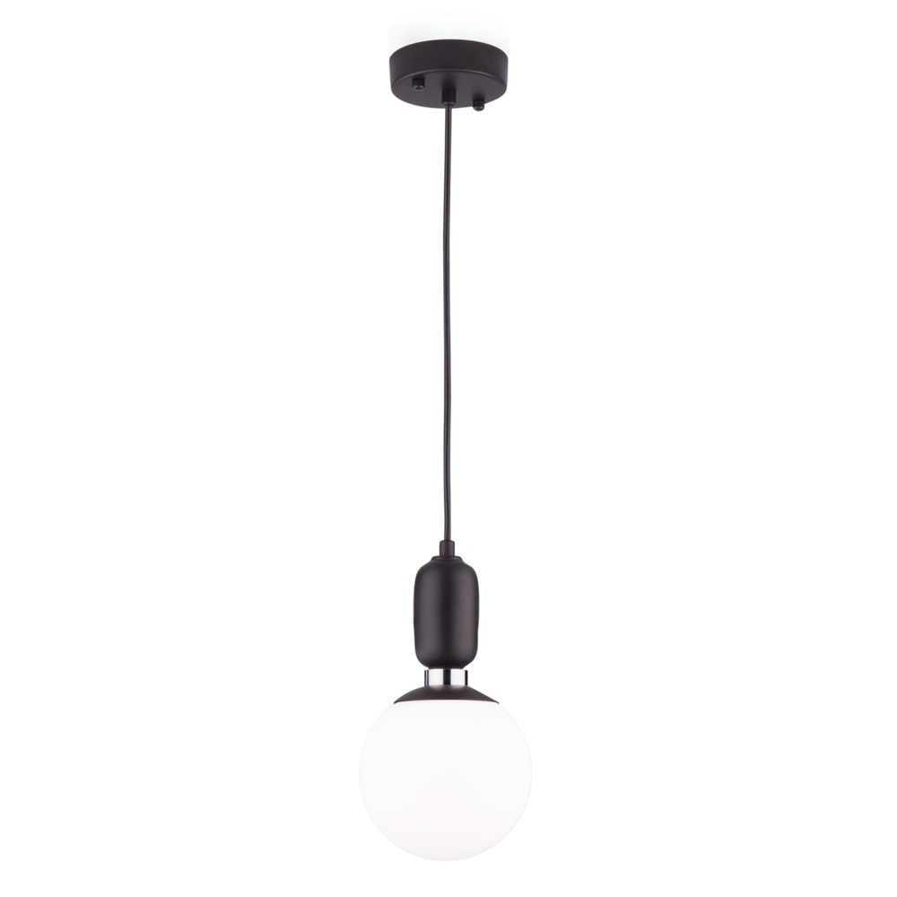 Подвесной светильник со стеклянным плафоном 50151/1 в черном цвете предназначен для создания дополнительного освещения и акцентной подсветки в современных интерьерах. Светильник со сменными лампами E27 создаст качественное освещение на площади 4 м кв. и подсветит рабочие зоны на кухне, в зале и в других местах.