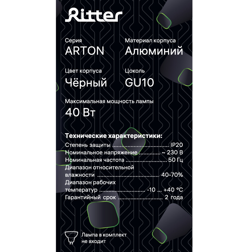 Светильник потолочный Ritter Arton GU10 40 Вт 4 кв.м черный IP20 (59951 7)