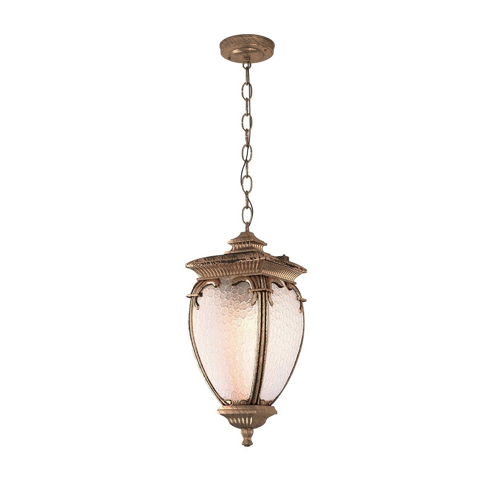 Уличный подвесной светильник Andromeda H черное золото предназначен для создания дополнительного освещения, а также декоративной подсветки снаружи помещений. Благодаря стеклянному плафону создает мягкое равномерное свечение. В качестве источника света используются сменные лампы с цоколем E27. Патрон рассчитан на максимальную мощность ламп накаливания 60 Вт. Корпус светильника выполнен из высококачественного и прочного металла с надежным покрытием. Уличный подвесной светильник Andromeda H черное золото легко монтируется при помощи крепежной планки, которая обеспечивает надежную фиксацию светильника.