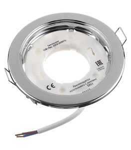 гостиниц, магазинов, банков, лестниц, лифтов и т.п. Идеально подходит для подвесных и натяжных потолков, мебели и других конструкций. Для использования со светодиодными или компактными люминесцентными лампами типа GX53.