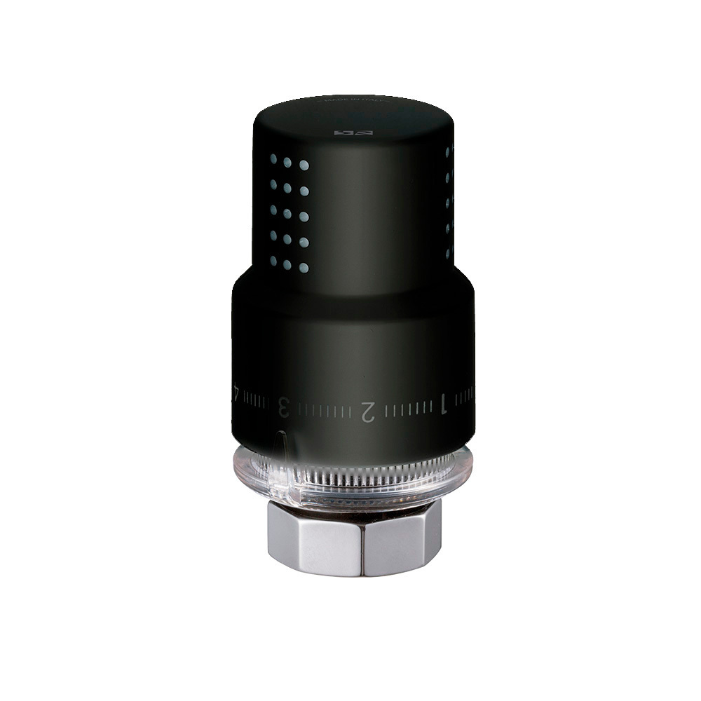 Термостатическая головка SR Rubinetterie Aria, c жидкостным датчиком. Диапазон регулировки температуры от +7 до +28°C. Режим защиты от замерзания — 7°C.