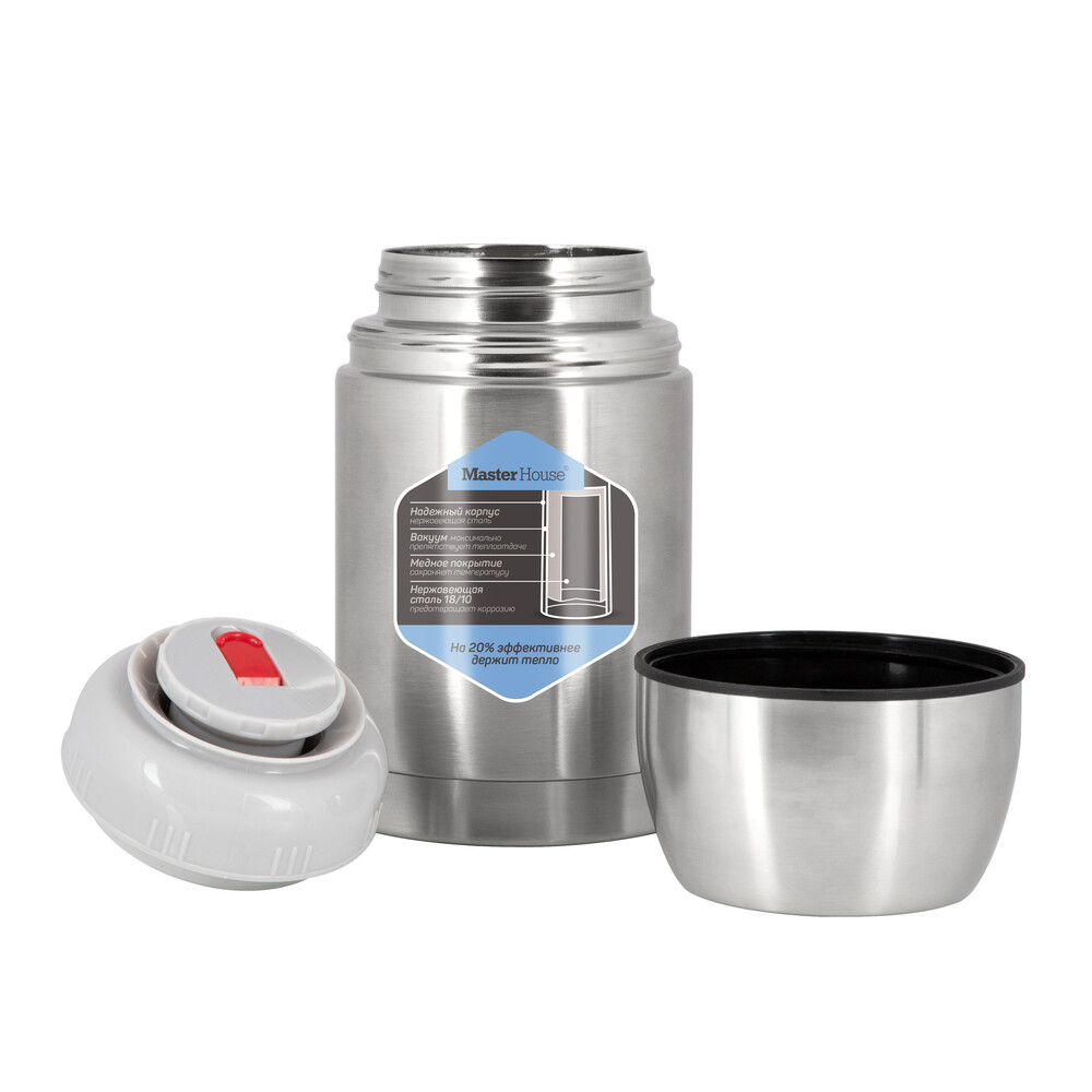 Термос для еды и напитков с широким горлом. Сохранит теплыми как суп, так чай или кофе. Изготовлен с вакуумной технологией из высококачественной нержавеющей стали, обладает высокими антикоррозийными свойствами. Любая посуда из нержавейки не меняет вкусовые качества, запах и цвет кофе чая и супа, безопасна для здоровья. Крышка термоса служит кружкой или пиалой для супа, создает дополнительную защиту и термоизоляцию. Имеет универсальный размер. Плотно закрывается герметичной пробкой для термоса с кнопкой-клапаном. Вы нальете в чашку напиток или бульон не пролив ни капли. Такая термопосуда будет полезна на охоте и рыбалке, на походной кухне, для активного отдыха на природе, в туристическом походе, рыболовном лагере, путешествии на автомобиле. Продукт сертифицирован и совершенно безопасен для детского здоровья. Термос подходит для воды, чая замороженного и горячего, кофе, льда, различных настоев, как посуда в дорогу, в поезд.