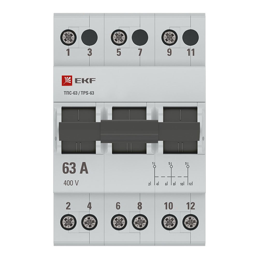 Трехпозиционный переключатель EKF PROxima ТПС-63 3Р 63А 4,5 кА 400 В на DIN-рейку (TPS363)