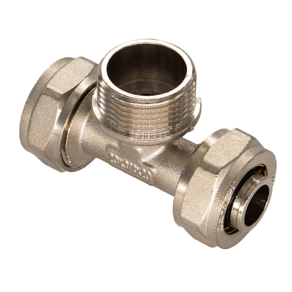 Главная / Каталог / Инженерные системы / Водоснабжение / Металлопластиковые трубы, фитинги и комплектующие / Обжимные фитинги / Тройник 20 обж(ц) х 1/2 НР(ш) х 20 обж(ц)