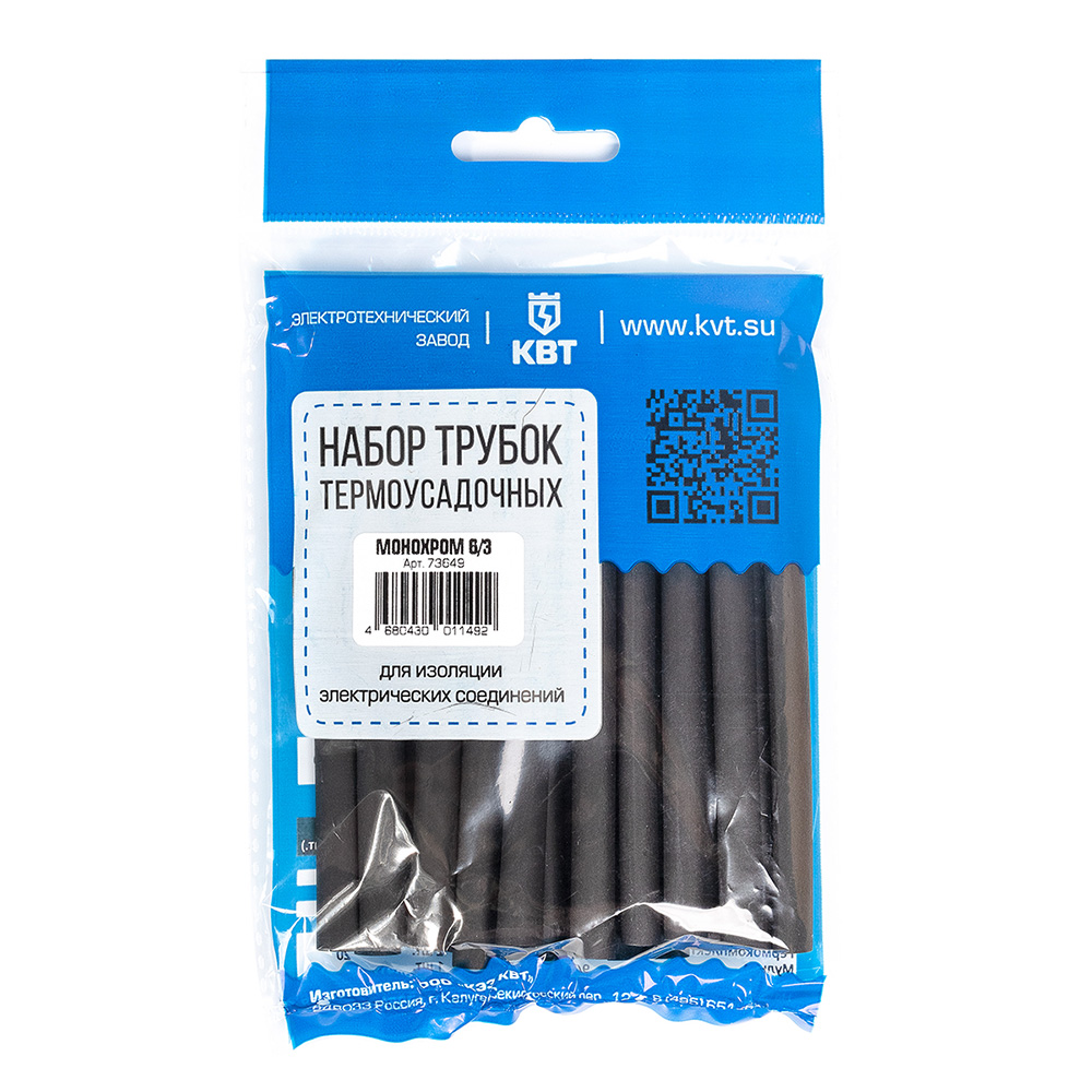 Трубка термоусадочная КВТ Монохром ТНТ нг 6/3 мм 100 мм черная (20 шт.)