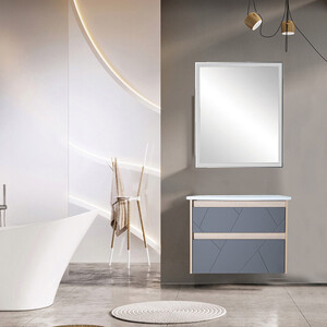Подвесная тумба изготовлена из влагостойких материалов, с двумя практичными выдвижными ящиками. Глянцевые фасады тумбы декорированы современным геометрическим рисунком, который эффектно контрастирует …
