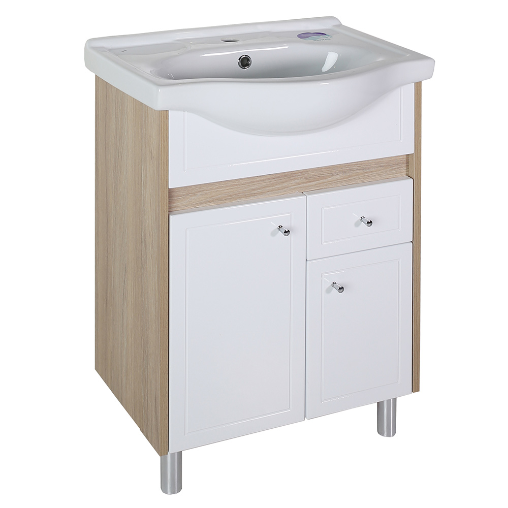 Тумба под раковину АСБ-Мебель Магнолия 60 см напольная белая/дуб янтарный (9100)