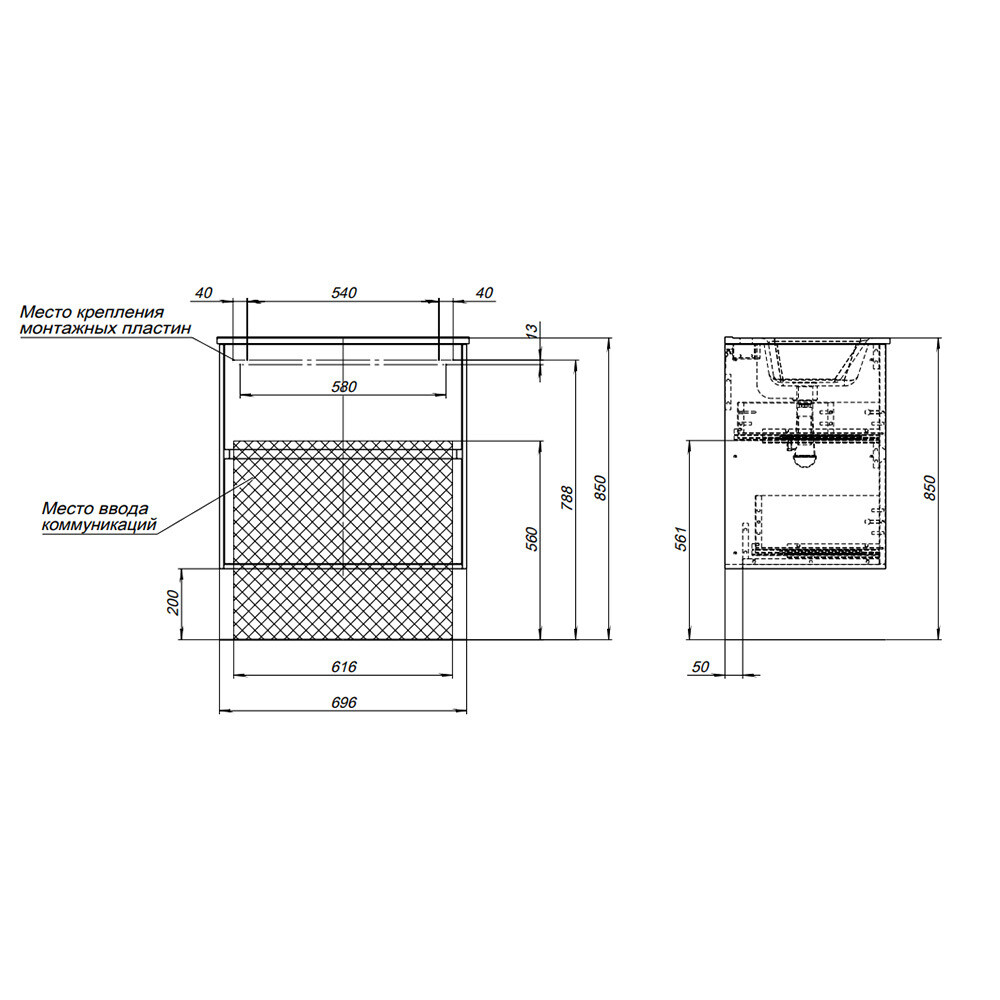 Тумба под раковину Lavelly Cube 71 см подвесная графит матовый (00316631)