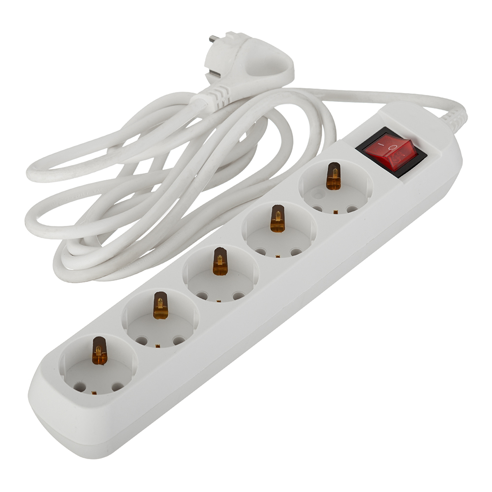 Удлинитель Эра 5 розеток 3 м ПВС 3х0,75 кв.мм 10 А 2,2 кВт с кнопкой белый (Б0035757)