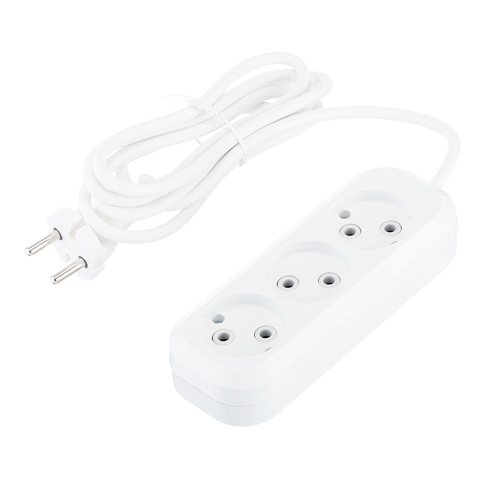 Удлинитель Makel 3 розетки 2 м ПВС 2х0,75 кв.мм 10 А 2,2 кВт белый (MGP122)