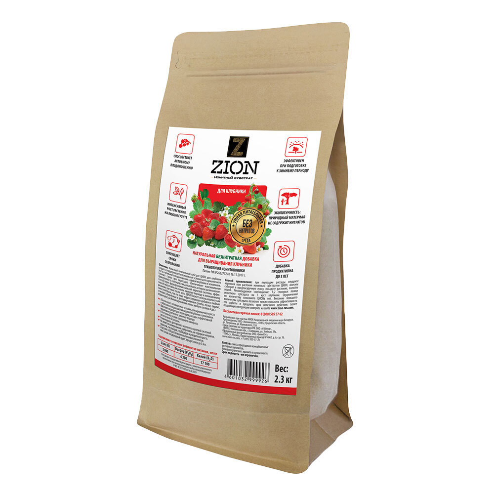 Удобрение для выращивания клубники ионитный субстрат Zion 2,3 кг