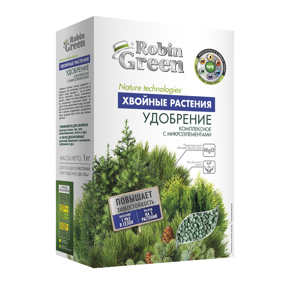 Удобрение минеральное сухое для хвойных растений гранулированное Робин Грин 1 кг