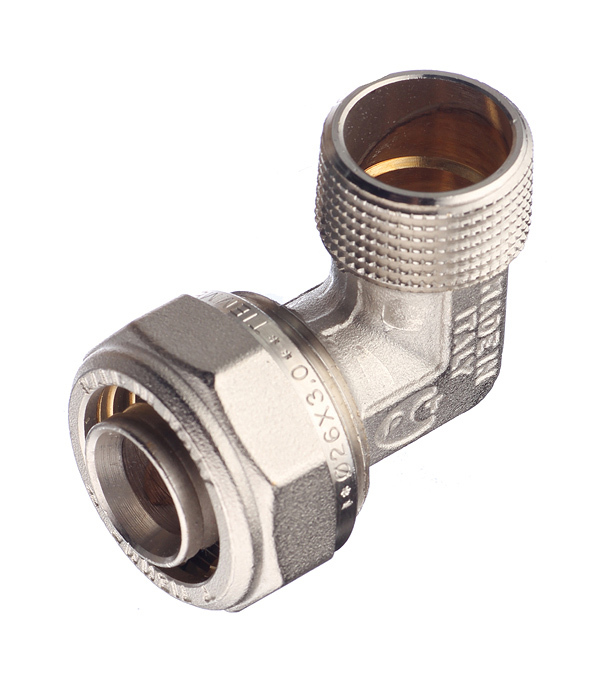 Предназначен для изменения направления металлопластиковой трубы диаметром 26 мм на 90º с переходом на резьбовое соединение 3/4″ (20 мм) с наружной резьбой.