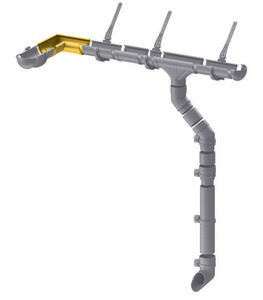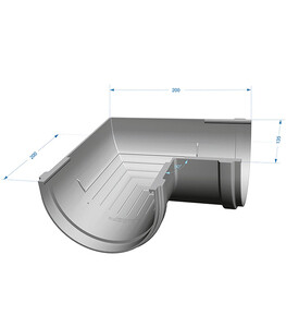 Угол желоба устанавливается на внешних и внутренних углах кровли и предназначен для соединения желобов под углом 135 в целях изменения направления движения воды. Нет резинового уплотнителя.
