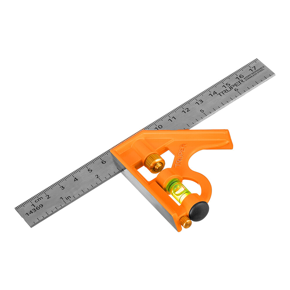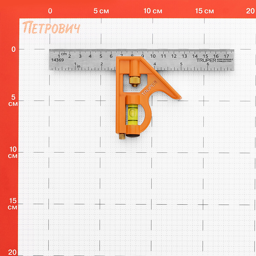 Угольник строительный Truper 180 мм с уровнем стальной
