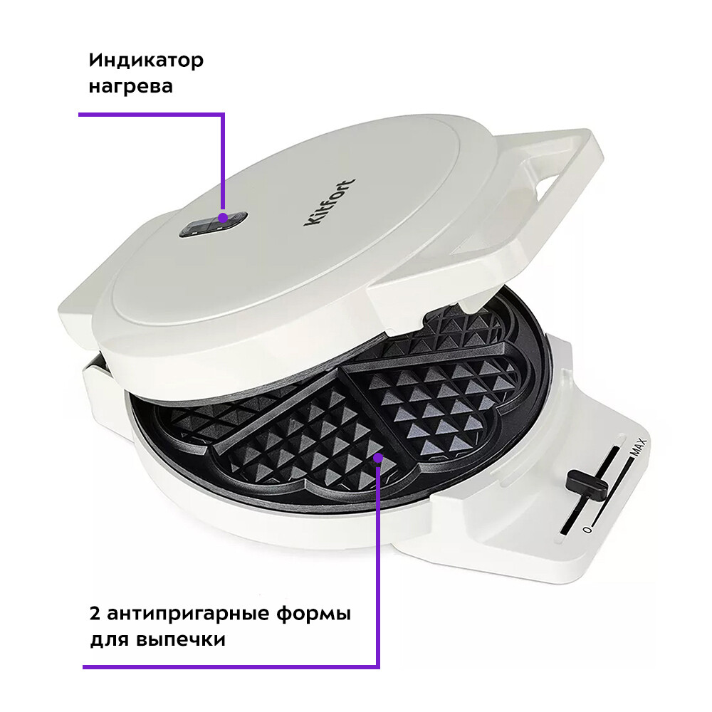 С помощью электрической вафельницы Kitfort КТ-1624 можно испечь наивкуснейшие венские вафли за считанные минуты. Термостат с плавной регулировкой позволяет выставить температуру приготовления. Корпус вафельницы выполнен из термостойкого пластика, а формы для выпечки покрыты антипригарным покрытием.
