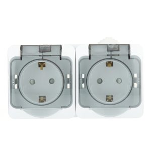 Розетка Systeme Electric Этюд накладная белая со шторками с крышкой (PA16-244B)