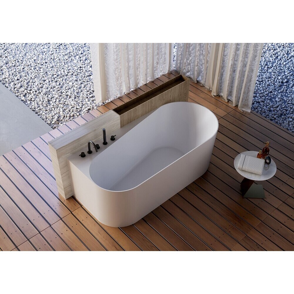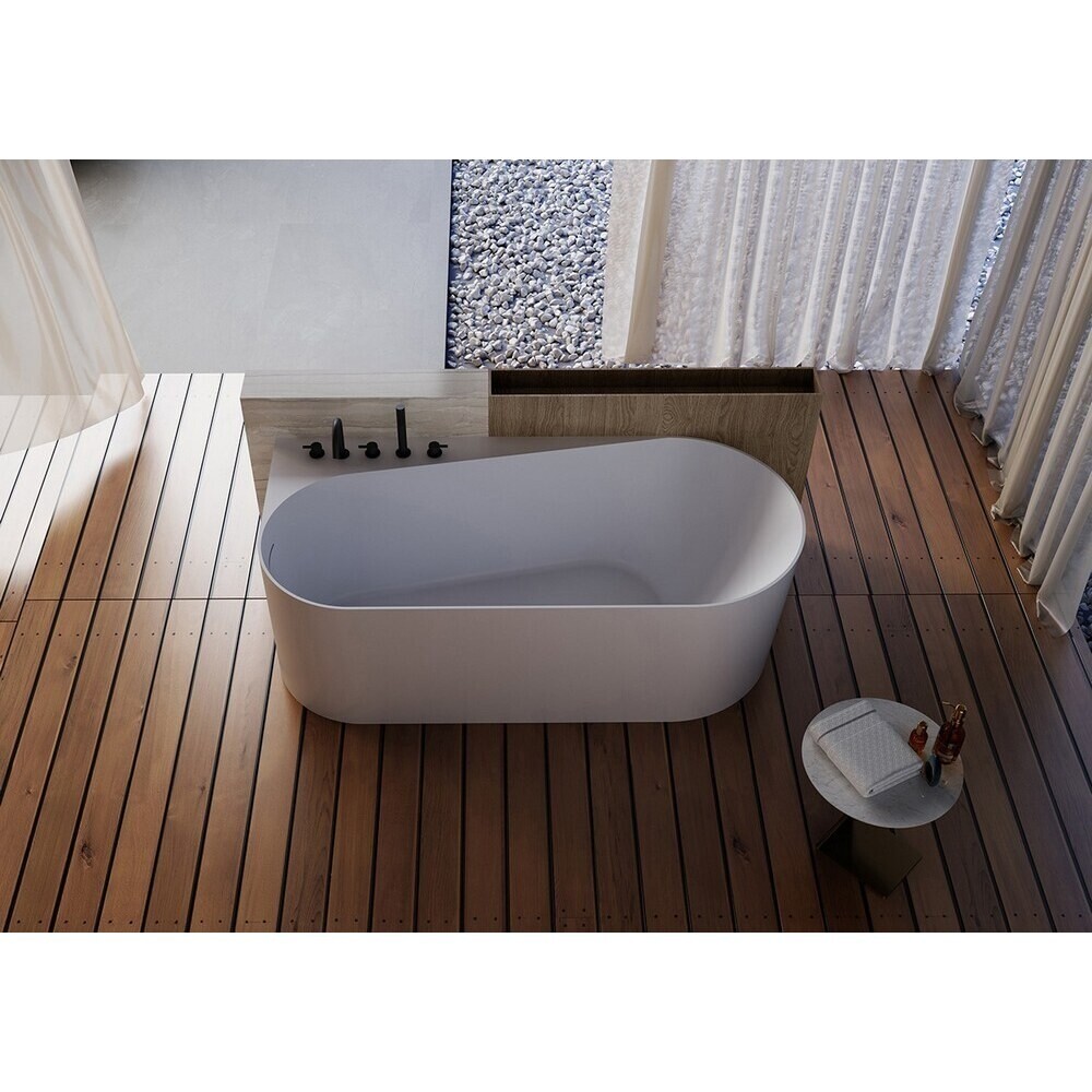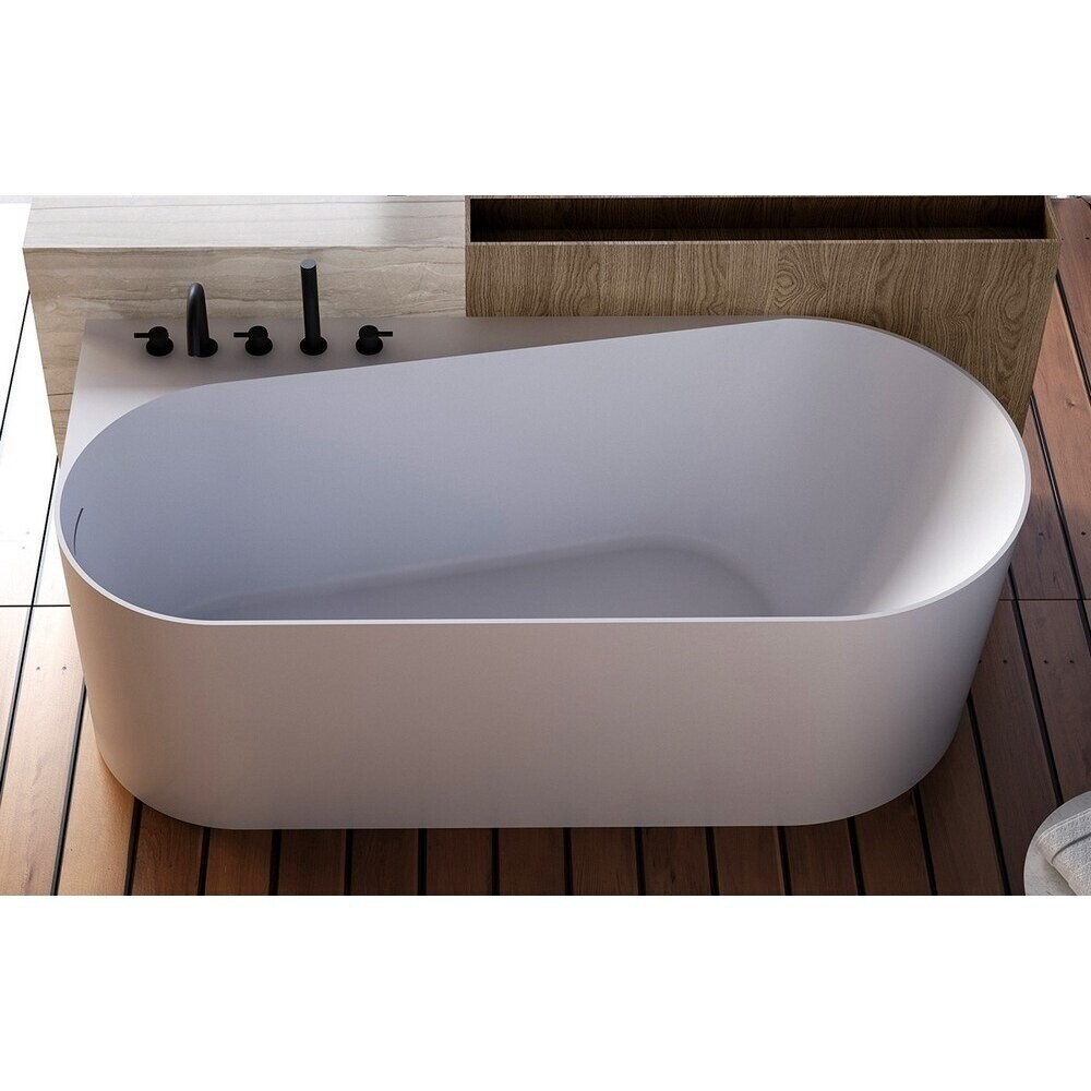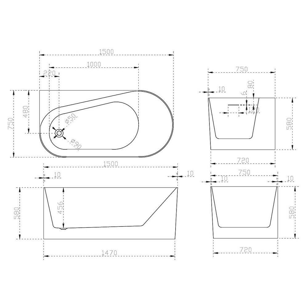 Ванна Abber, выполненная из 100% санитарного акрила, имеет ассиметричную форму. Сливное отверстие расположено сбоку. Размер ванны составляет 150х75 см, объем — 210 л. Ванна выдерживает максимальную нагрузку 450 кг.