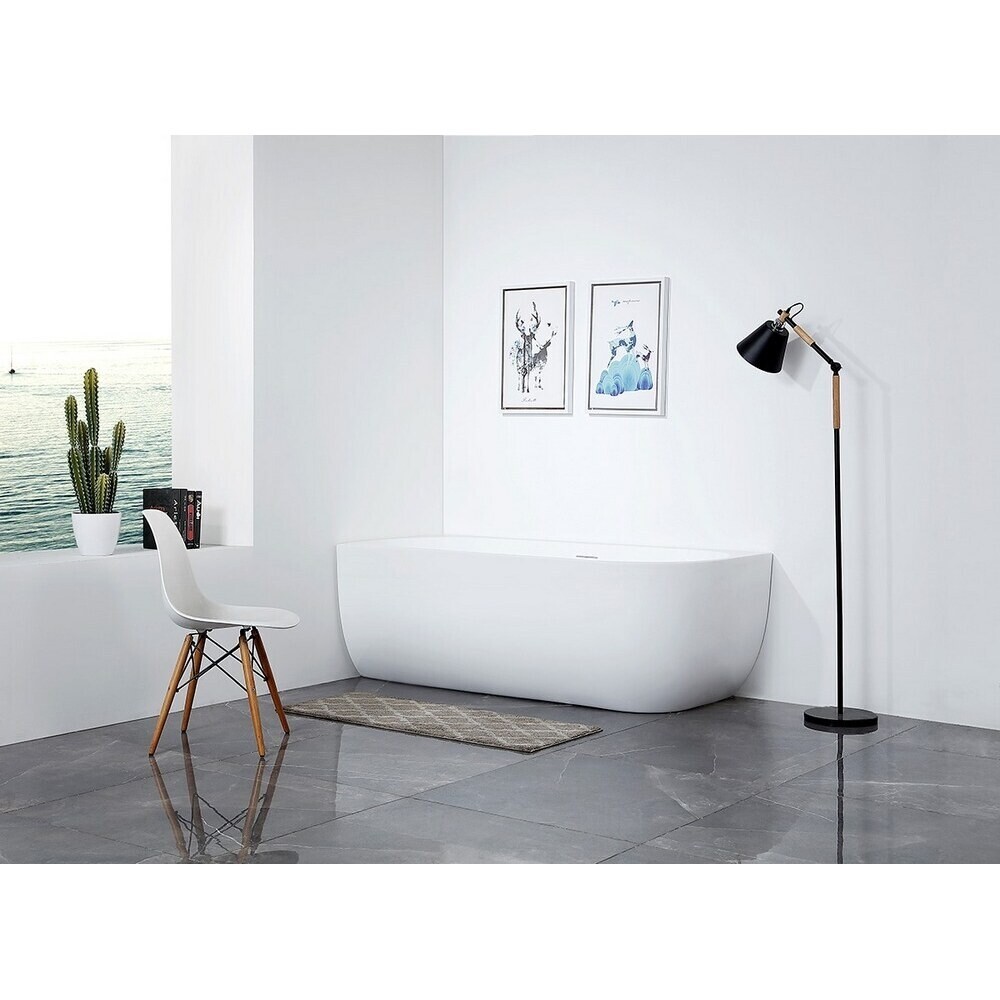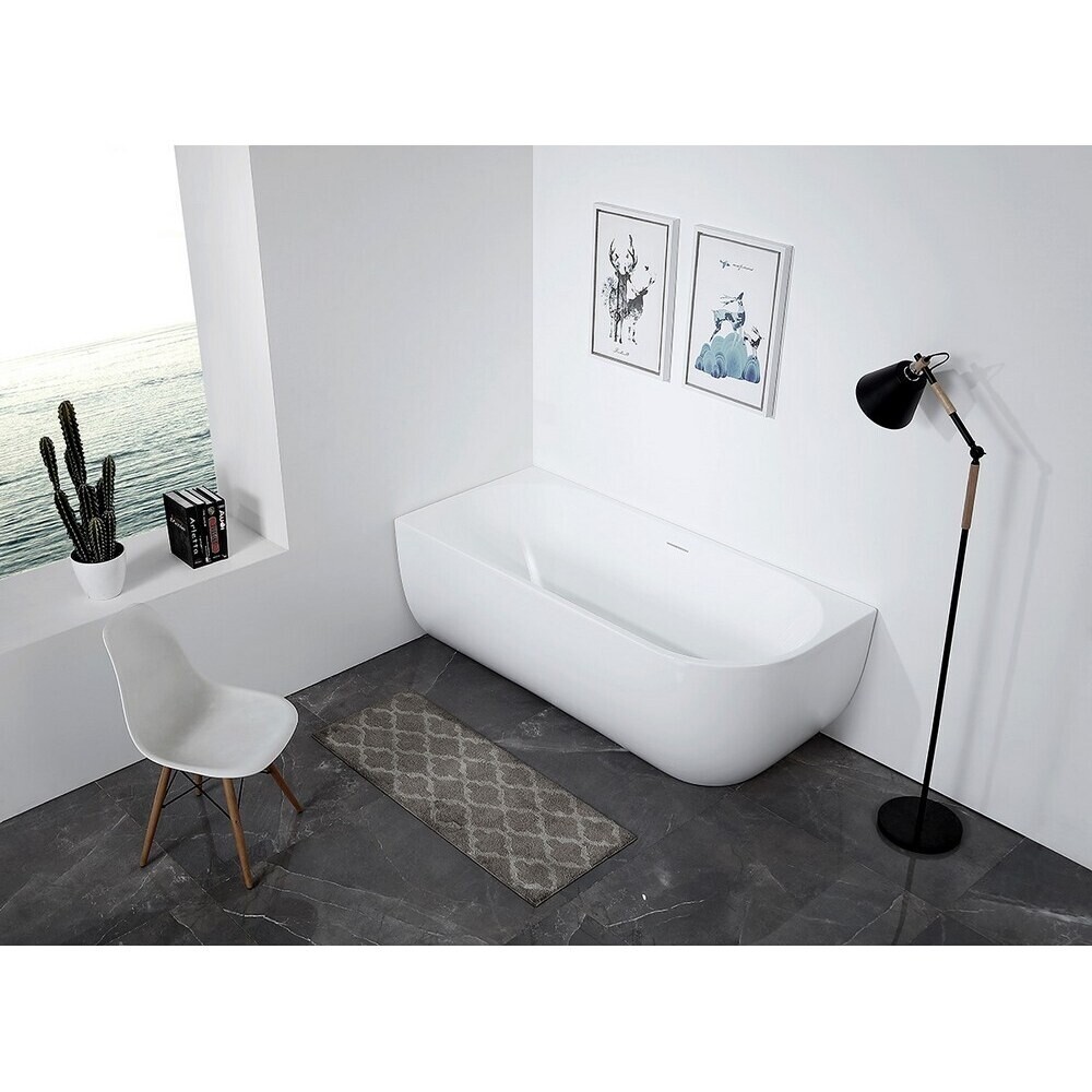 Ванна Abber, выполненная из 100% санитарного акрила, имеет ассиметричную форму. Сливное отверстие расположено по центру. Размер ванны составляет 170х75 см, объем – 210 л. Ванна выдерживает максимальную нагрузку 450 кг.